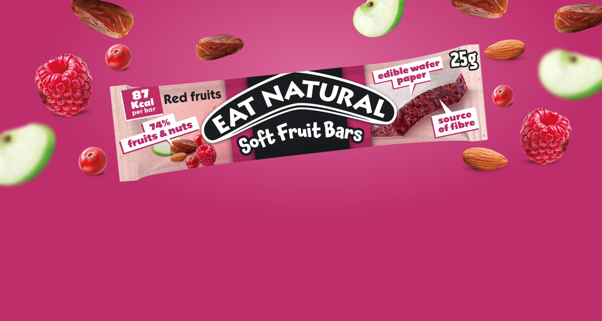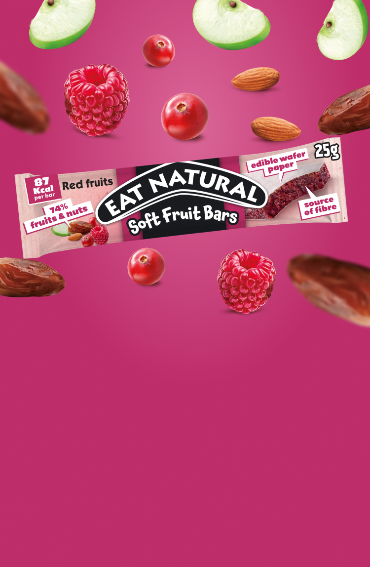 The Red Fruits Soft Bar blends fruits and nuts for a fruity flavour and soft, juicy texture that the whole family will enjoy. Individually wrapped portions, and 87 calories per bar, it’s a convenient snack that fits perfectly into your day. It’s gluten free, vegan and a source of fibre too.